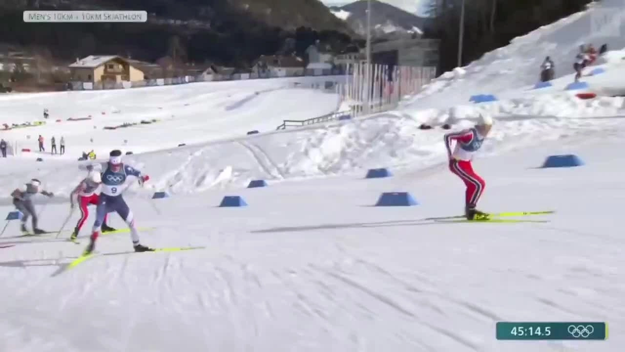 Khi nhiều đối thủ bắt đầu hụt hơi,nhịp trượt chậm lại và động tác chống gậy nặng nề hơn,VĐV Na Uy vẫn duy trì tần suất đều đặn,thân người đổ về trước,hai tay quạt gậy mạnh và dứt khoát. Anh tăng tốc ngay trên độ dốc vốn được xem là "máy xay thể lực" của mọi cuộc đua băng đồng.